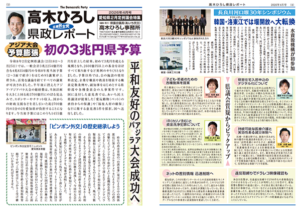 国に送付した意見書では、あいち民主県議団が提案した「愛玩動物(ペット)の虐待からの保護」や「福祉人材の確保」などに関する意見書5件を採択、国へ送付しました。