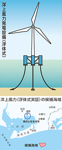 今後の再生可能エネルギーの主力として期待されている「浮体式洋上風力発電」に関して、秋田県沖とともに愛知県の田原・豊橋沖で実証実験が行われることになり、その事業者として中部電力グループのシーテックや日立造船など5社による共同事業者が担うと発表された。
